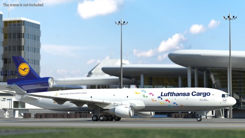 McDonnell Douglas MD11 Tri Jet Airliner Lufthansa Cargo 3d model is ready to be animated. You can easily position it the way you need or animate it the way your project requires using helpers in 3D Studio Max.