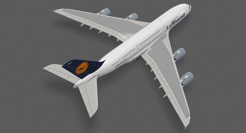 - Detailed 3d model of the Airbus A380-800 in Lufthansa paint scheme.-