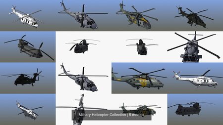 Military Helicopter Collection. CH47 Chinook, MH60 Seahawk, WZ-10, AH101 Merlin, NH90 Caiman. Great multipurpose 3D models - ideal for offline rendering or real time uses such as games or simulation.