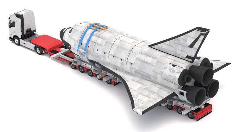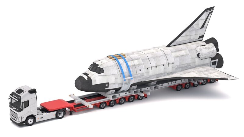High detailed Volvo fh16 2021 and Lowboy Trailer with Space Shuttle. Included: