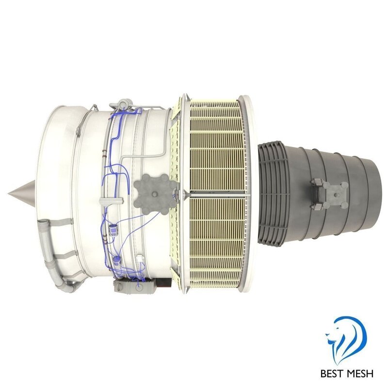 Very high detailed 3d model of a D-18T turbofan engine. The Progress D-18T is a three-shaft, high-bypass turbofan engine designed to power very large transport aircraft. It is the engine used by Antonov An-124 and Antonov An-225.