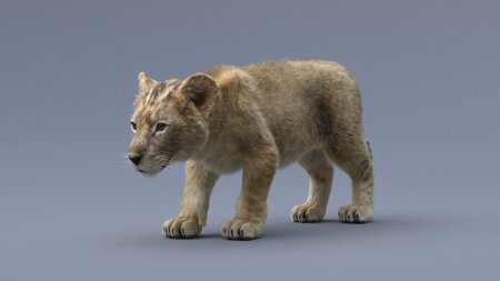 High quality realistic and rigged Lion Cub model with fur, it has an Arnold material with high-resolution textures. Lion Cub model has clean topology and good in one iteration of smoothing.