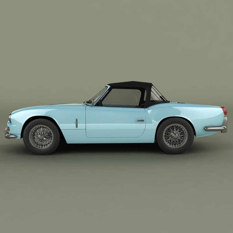 High detailed, correctly scaled model of Triumph Spitfire Mk 2 1966. Originally created with 3ds Max 8. Rendered with V-Ray , files with standard materials are included. Unit system is set to metric units. Model is built to real-world scale.