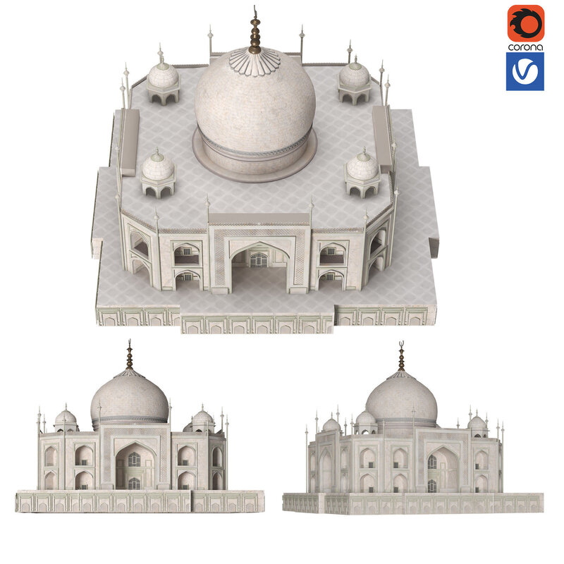 Hello dear designers Product Name:Taj Mahal Output version: 3D Max 2016 Polygon above:355839 Vertex: 368194 Formats: 3D Max 2016 and OBJ Rendering: vray5.2 ,corona 8.1