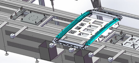 This is industrial 3D model car sunroof production line. The sunroof production line equipment is placed on a double speed chain line for circulation, for stations requiring high precision (engine lock, glass lock) are positioned and assembled independently outside In line, the stations to be adjusted are equipped with precision adjustment mechanism and LVDT. Real-time adjustment ensures that more than 90% of offline products qualify for the first time offline surface difference. .If they are unqualified, they can be repaired manually at the local station to avoid the problem of high product offline failure rate. Kawasaki six-axis robot is used.