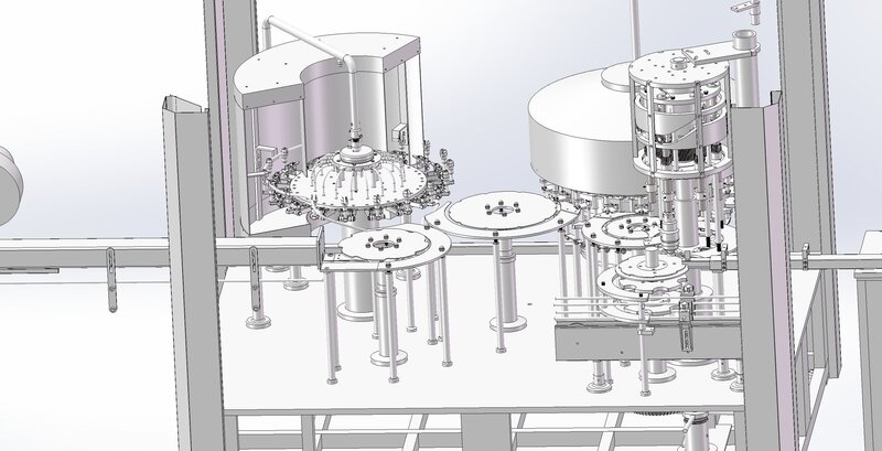 The equipment is a rotary filling machine, the machine is divided into three areas, including two rotary filling areas, can be expanded into 18 head filling. It also includes feeding line and unloading line. The equipment is a machine production equipment, can be used as a reference for designing similar products.