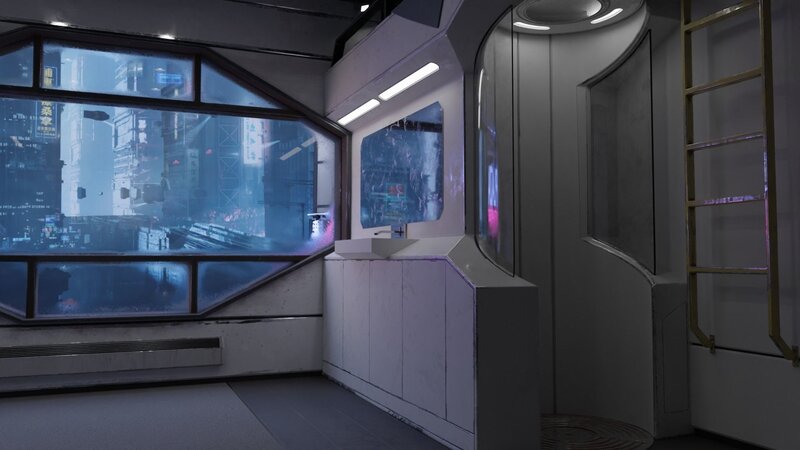Detailed Cyberpunk Style Scene.